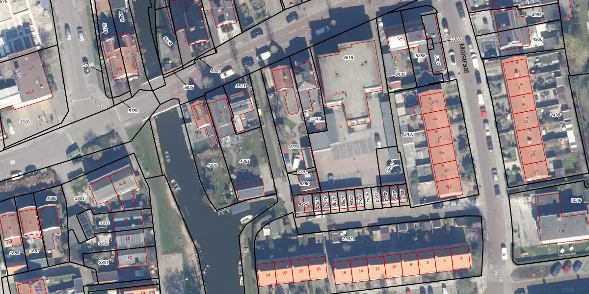 Gebruik de zoekbalk of klik op een perceel om informatie over het perceel te bekijken.