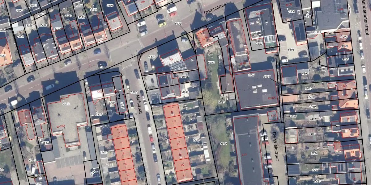 Gebruik de zoekbalk of klik op een perceel om informatie over het perceel te bekijken.