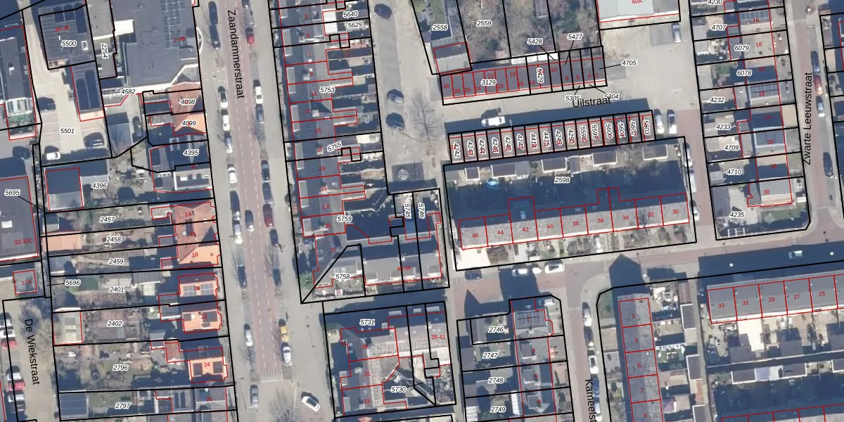 Gebruik de zoekbalk of klik op een perceel om informatie over het perceel te bekijken.