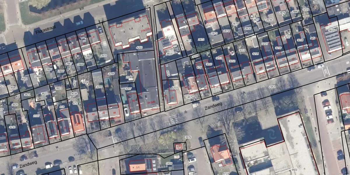 Gebruik de zoekbalk of klik op een perceel om informatie over het perceel te bekijken.