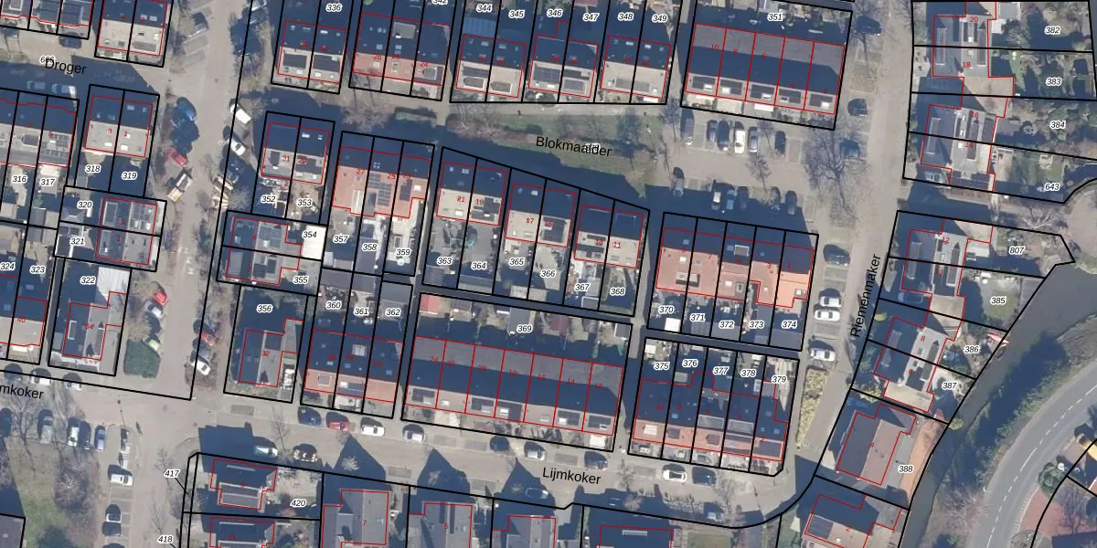 Gebruik de zoekbalk of klik op een perceel om informatie over het perceel te bekijken.