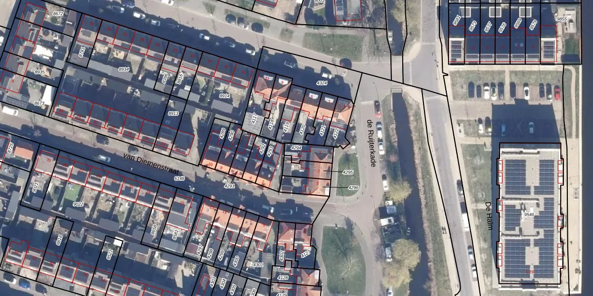 Gebruik de zoekbalk of klik op een perceel om informatie over het perceel te bekijken.