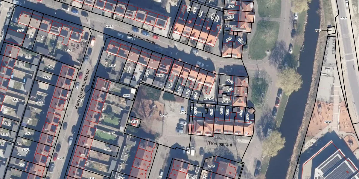 Gebruik de zoekbalk of klik op een perceel om informatie over het perceel te bekijken.