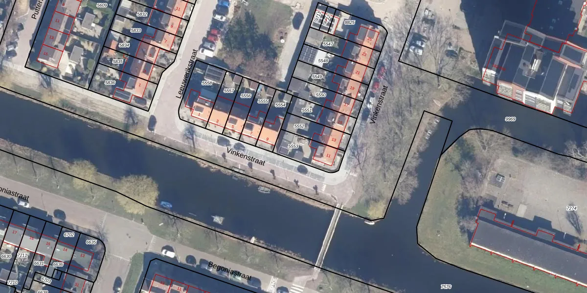 Gebruik de zoekbalk of klik op een perceel om informatie over het perceel te bekijken.