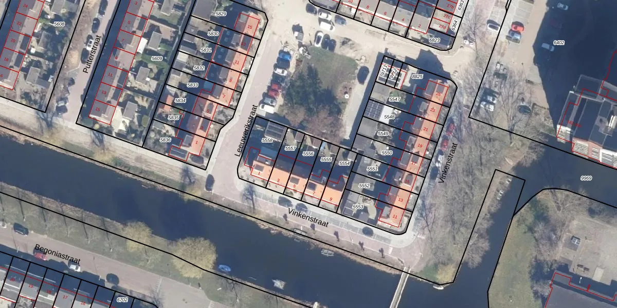 Gebruik de zoekbalk of klik op een perceel om informatie over het perceel te bekijken.
