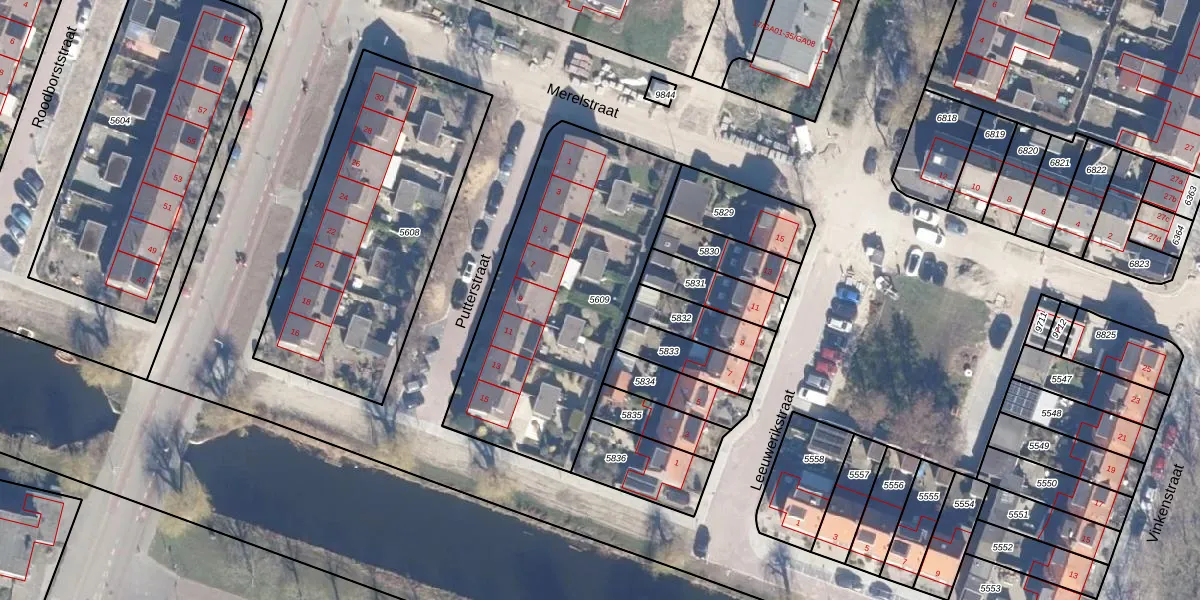 Gebruik de zoekbalk of klik op een perceel om informatie over het perceel te bekijken.