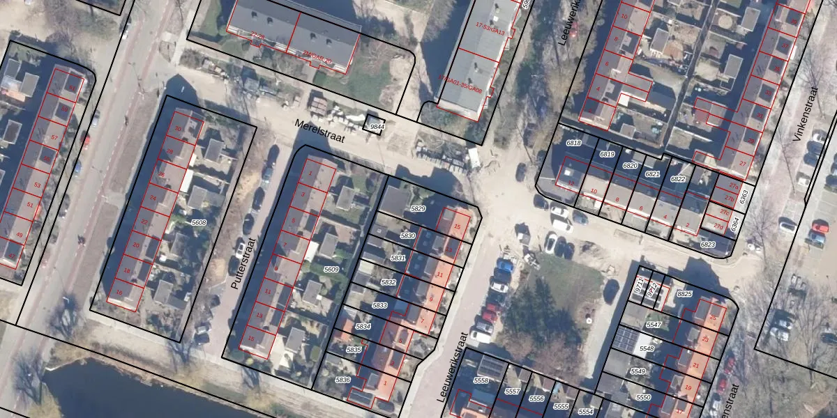 Gebruik de zoekbalk of klik op een perceel om informatie over het perceel te bekijken.