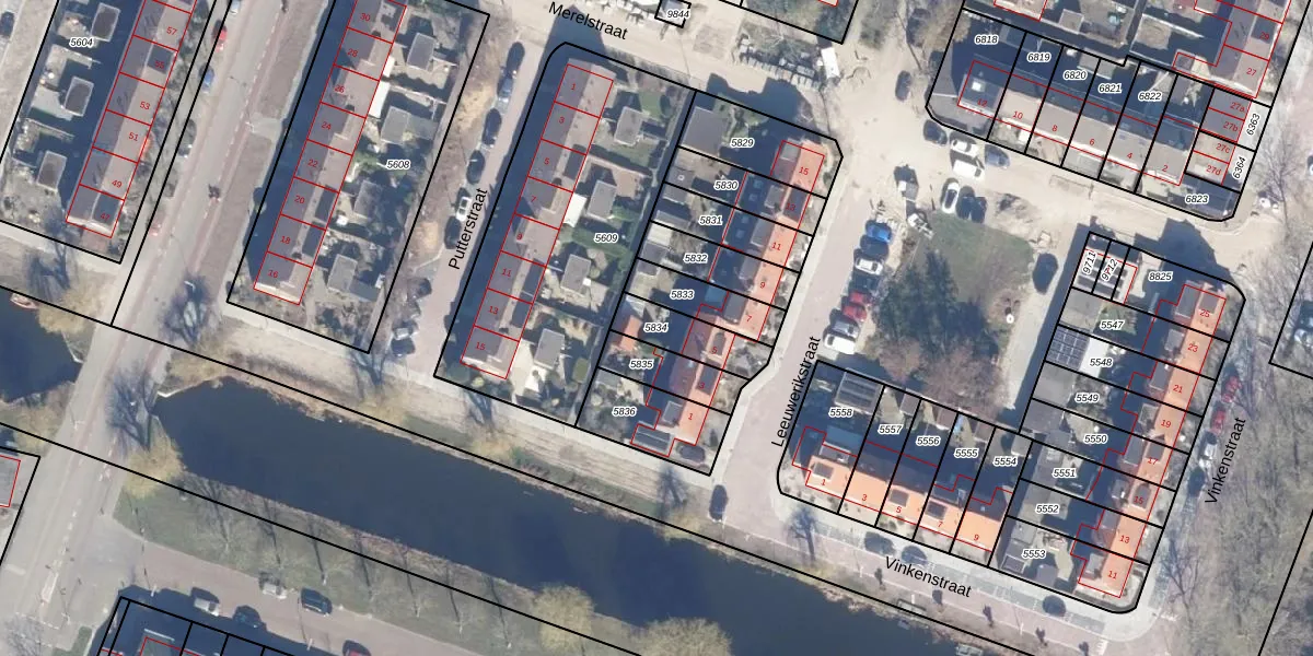 Gebruik de zoekbalk of klik op een perceel om informatie over het perceel te bekijken.