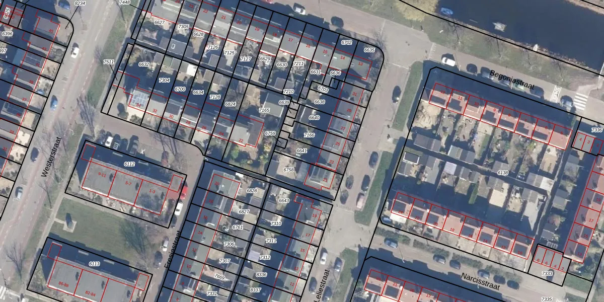Gebruik de zoekbalk of klik op een perceel om informatie over het perceel te bekijken.