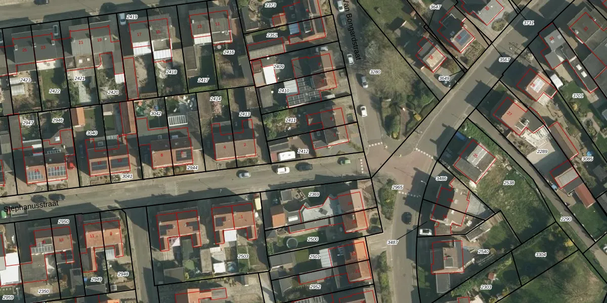 Gebruik de zoekbalk of klik op een perceel om informatie over het perceel te bekijken.