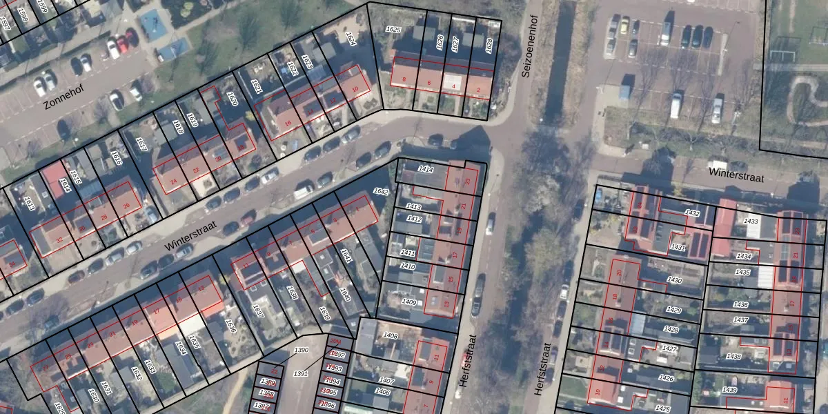 Gebruik de zoekbalk of klik op een perceel om informatie over het perceel te bekijken.