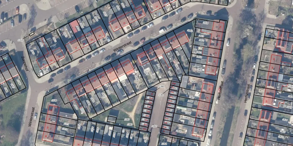 Gebruik de zoekbalk of klik op een perceel om informatie over het perceel te bekijken.