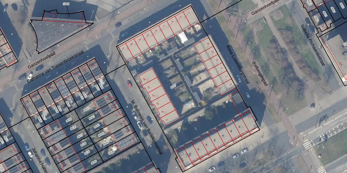 Gebruik de zoekbalk of klik op een perceel om informatie over het perceel te bekijken.