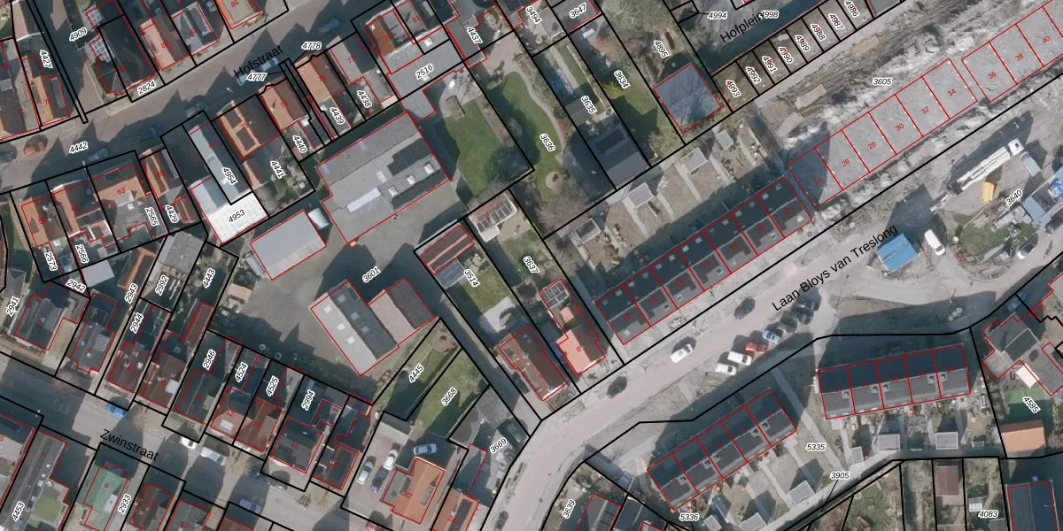 Gebruik de zoekbalk of klik op een perceel om informatie over het perceel te bekijken.