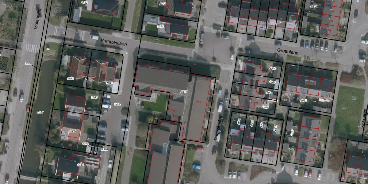 Gebruik de zoekbalk of klik op een perceel om informatie over het perceel te bekijken.
