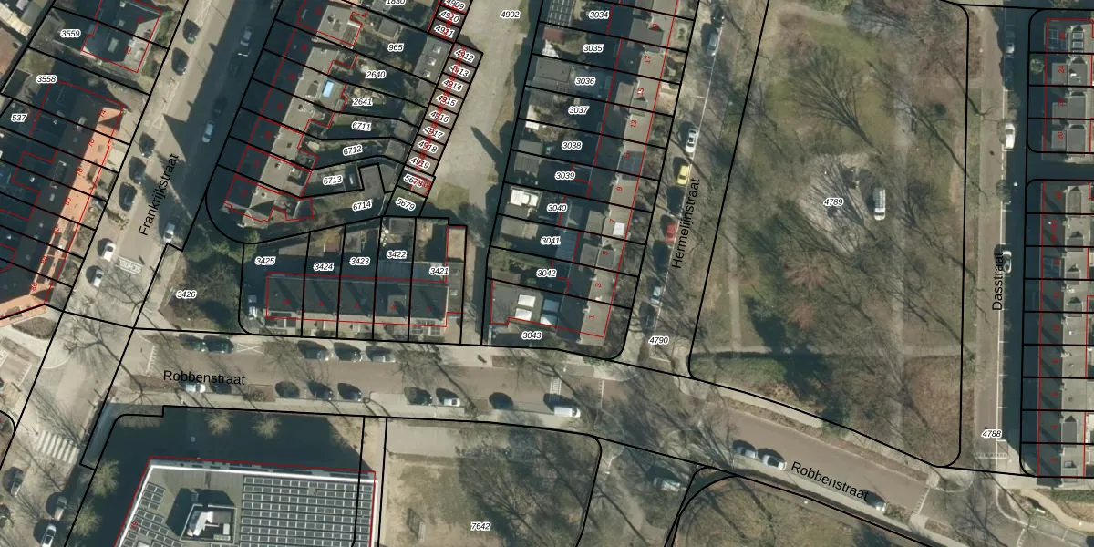 Gebruik de zoekbalk of klik op een perceel om informatie over het perceel te bekijken.