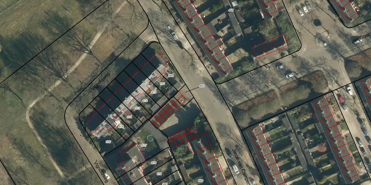 Gebruik de zoekbalk of klik op een perceel om informatie over het perceel te bekijken.