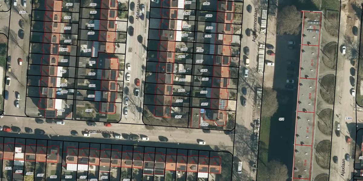 Gebruik de zoekbalk of klik op een perceel om informatie over het perceel te bekijken.