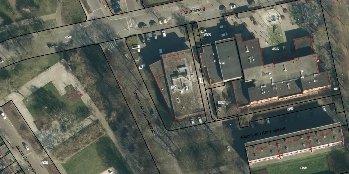 Gebruik de zoekbalk of klik op een perceel om informatie over het perceel te bekijken.