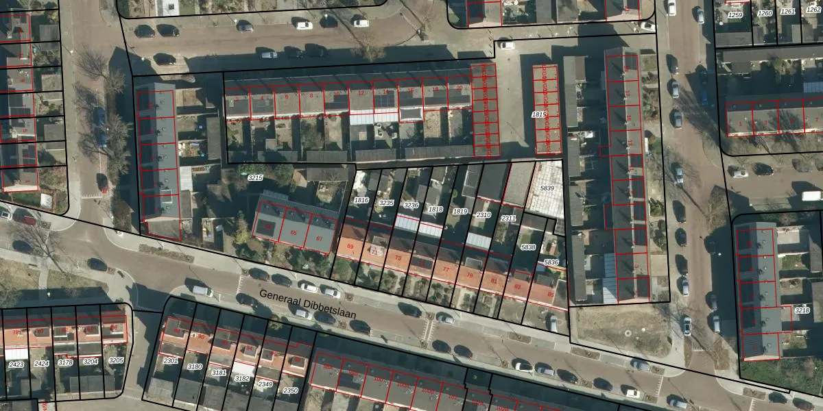 Gebruik de zoekbalk of klik op een perceel om informatie over het perceel te bekijken.