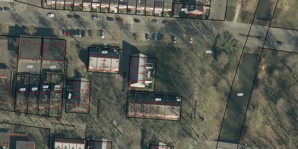 Gebruik de zoekbalk of klik op een perceel om informatie over het perceel te bekijken.