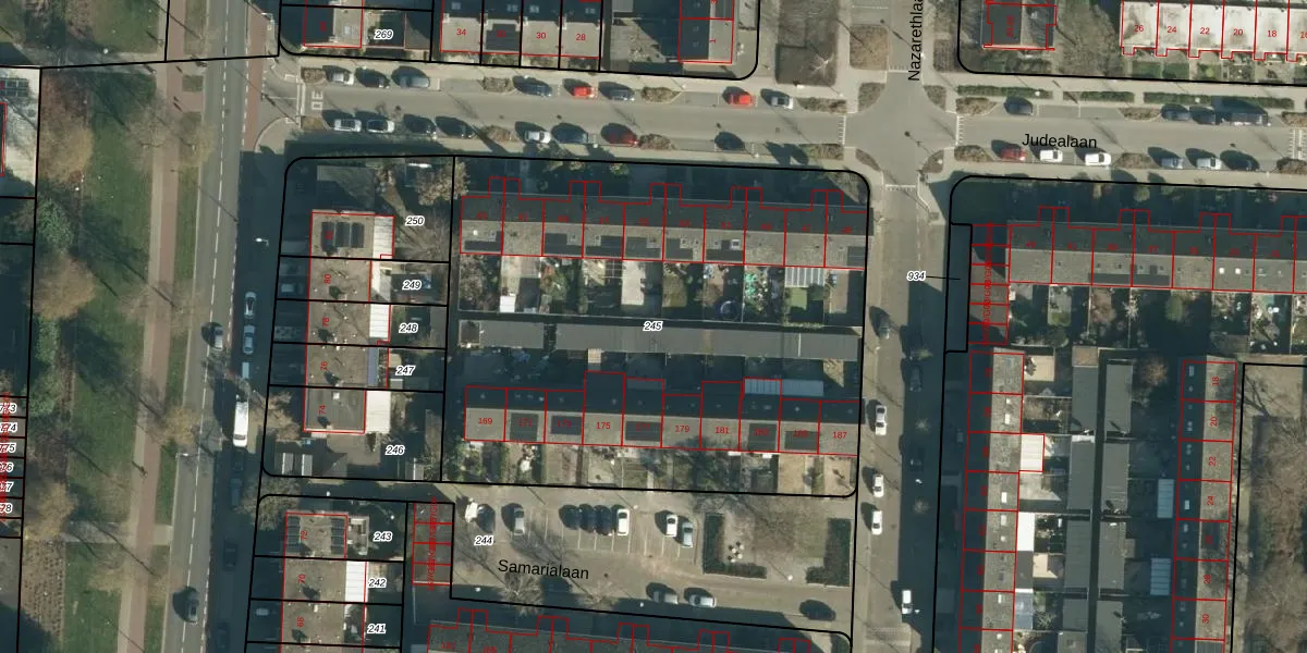 Gebruik de zoekbalk of klik op een perceel om informatie over het perceel te bekijken.