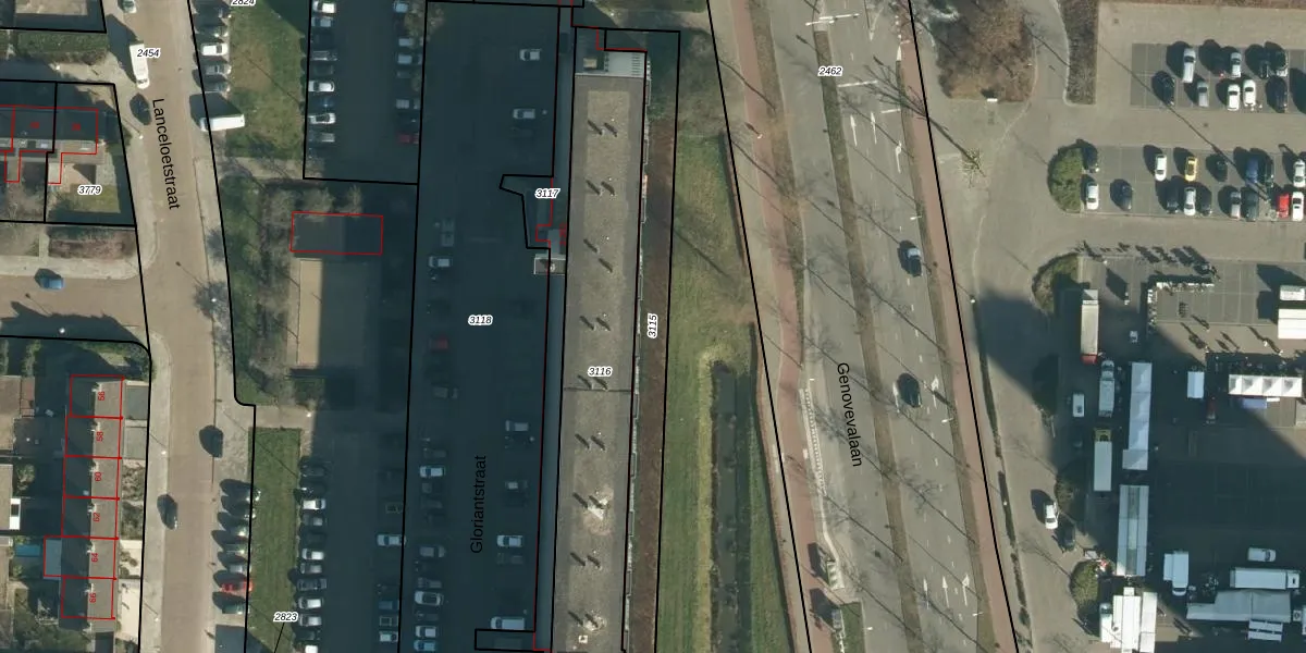 Gebruik de zoekbalk of klik op een perceel om informatie over het perceel te bekijken.