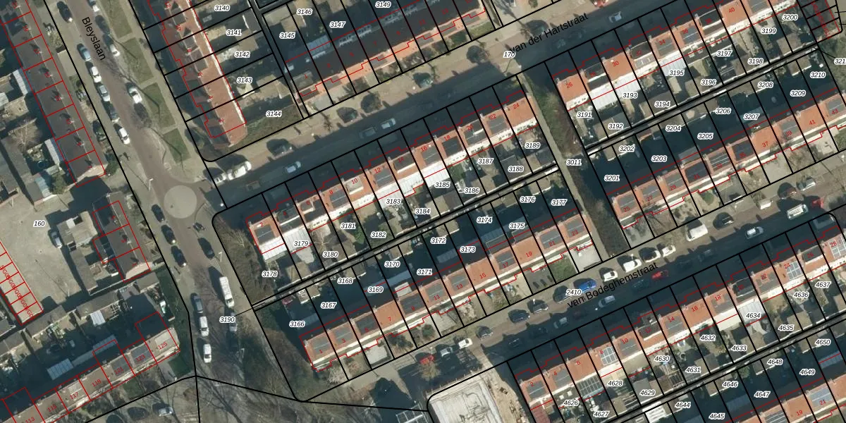 Gebruik de zoekbalk of klik op een perceel om informatie over het perceel te bekijken.