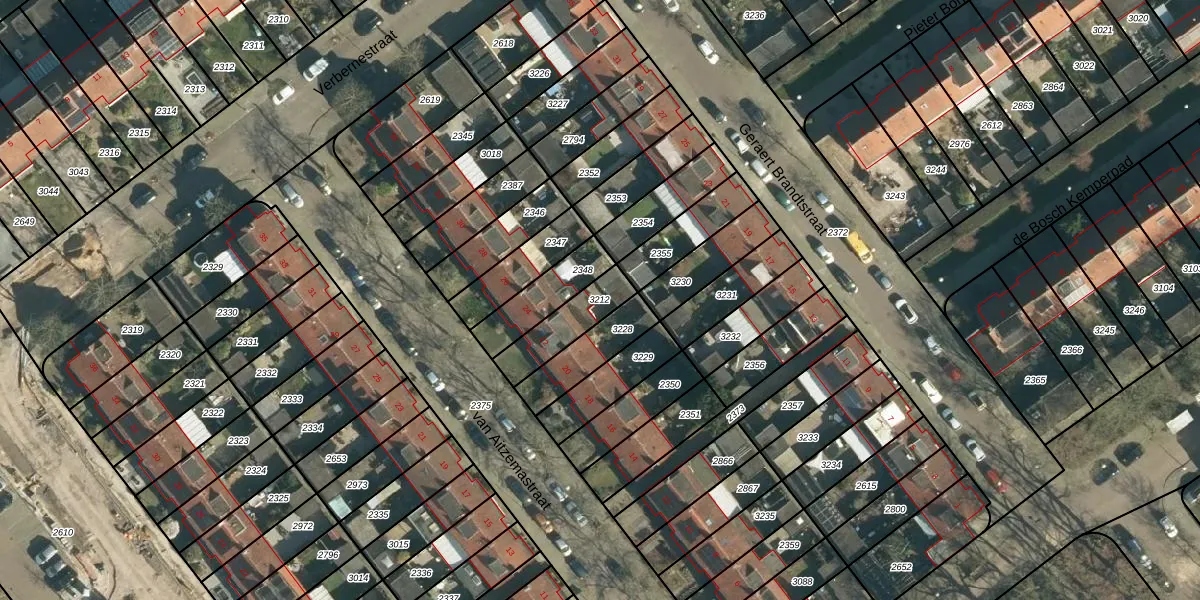 Gebruik de zoekbalk of klik op een perceel om informatie over het perceel te bekijken.