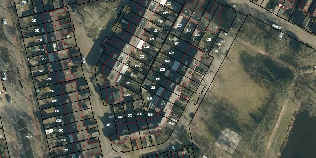 Gebruik de zoekbalk of klik op een perceel om informatie over het perceel te bekijken.