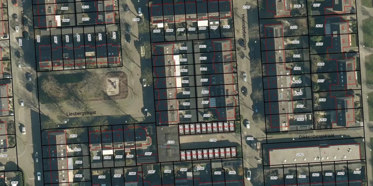 Gebruik de zoekbalk of klik op een perceel om informatie over het perceel te bekijken.