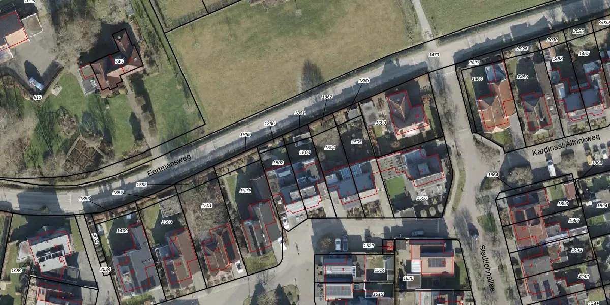 Gebruik de zoekbalk of klik op een perceel om informatie over het perceel te bekijken.