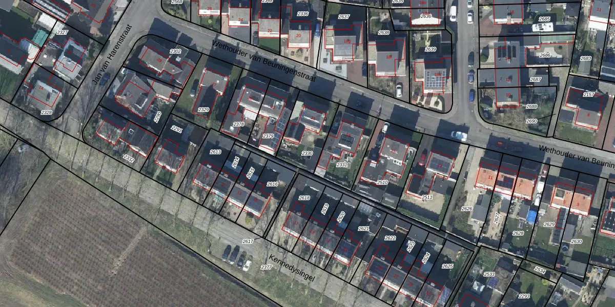 Gebruik de zoekbalk of klik op een perceel om informatie over het perceel te bekijken.