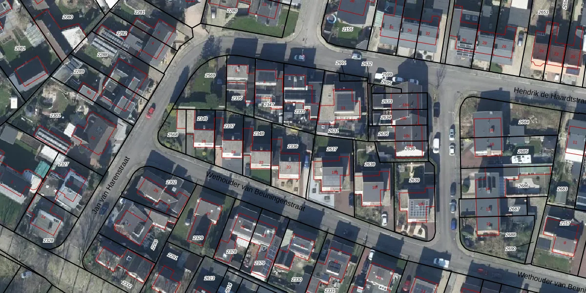 Gebruik de zoekbalk of klik op een perceel om informatie over het perceel te bekijken.