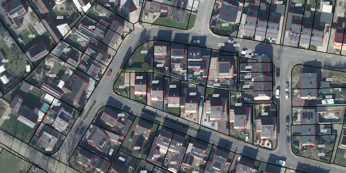 Gebruik de zoekbalk of klik op een perceel om informatie over het perceel te bekijken.
