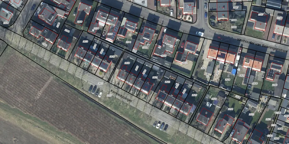 Gebruik de zoekbalk of klik op een perceel om informatie over het perceel te bekijken.