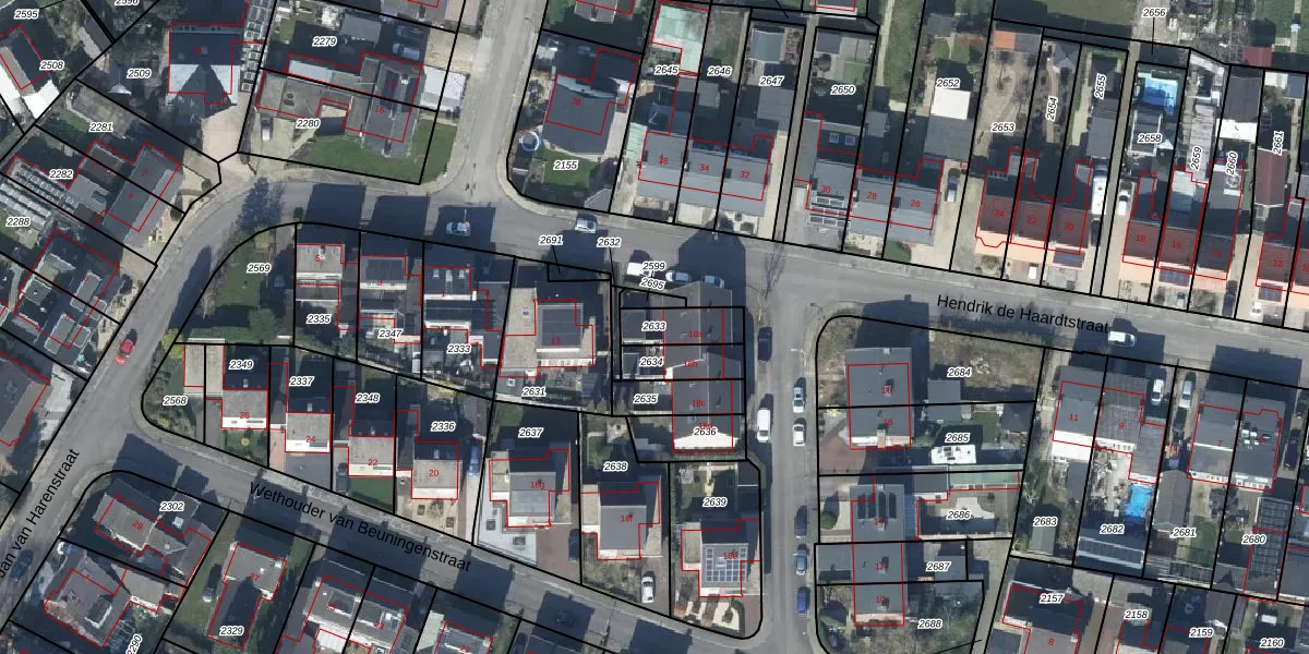 Gebruik de zoekbalk of klik op een perceel om informatie over het perceel te bekijken.