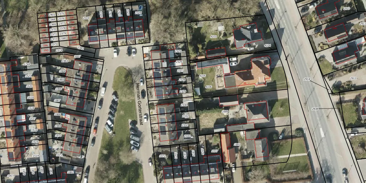 Gebruik de zoekbalk of klik op een perceel om informatie over het perceel te bekijken.