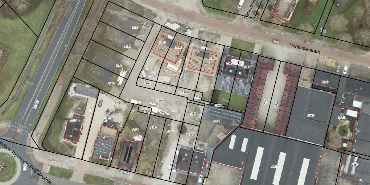 Gebruik de zoekbalk of klik op een perceel om informatie over het perceel te bekijken.