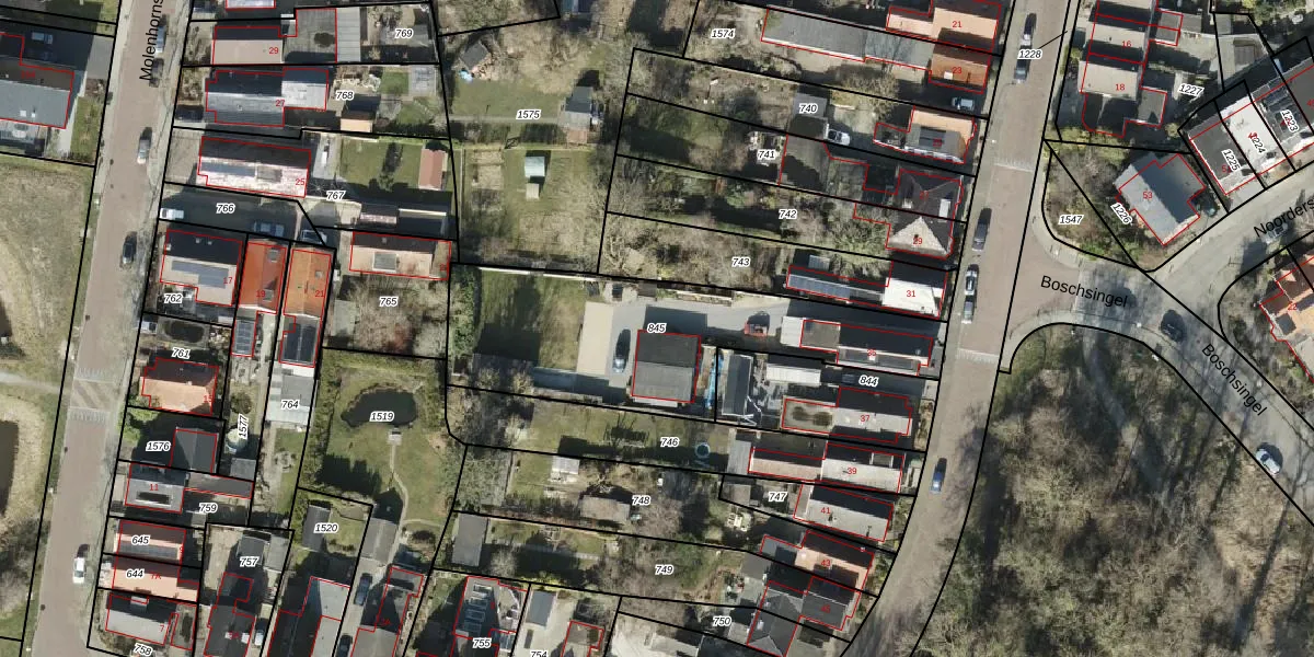 Gebruik de zoekbalk of klik op een perceel om informatie over het perceel te bekijken.