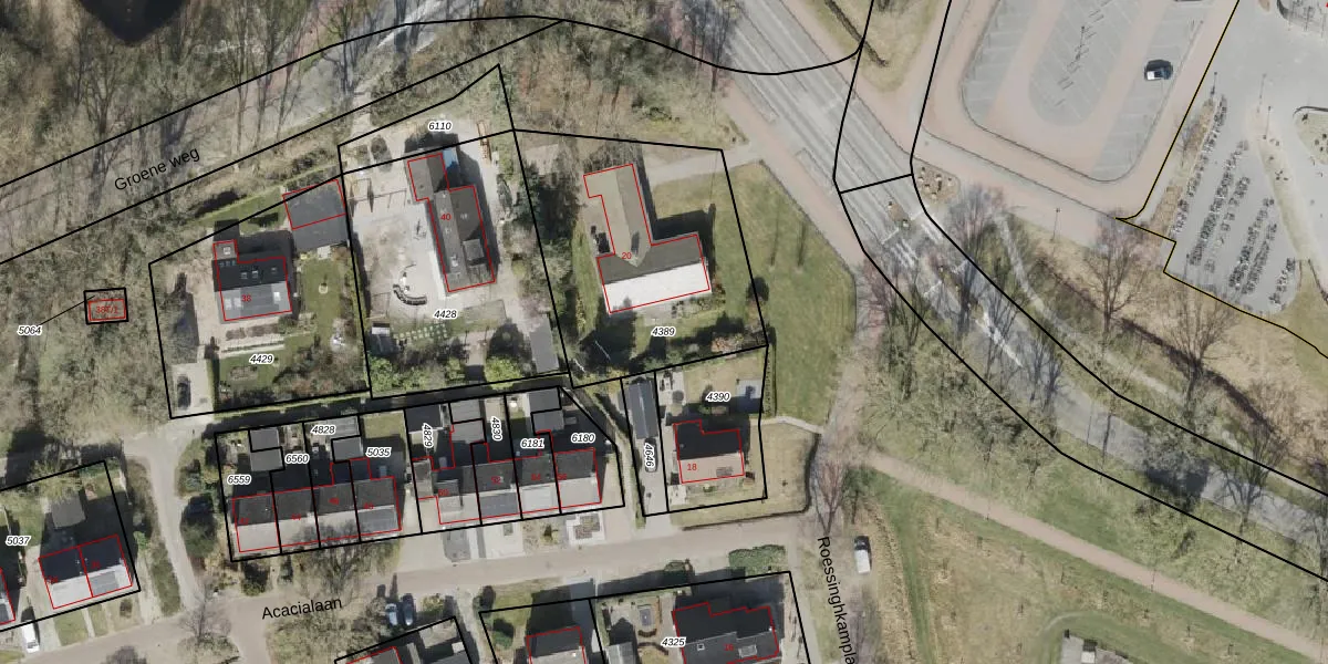 Gebruik de zoekbalk of klik op een perceel om informatie over het perceel te bekijken.