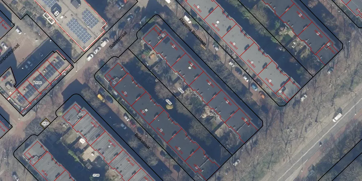 Gebruik de zoekbalk of klik op een perceel om informatie over het perceel te bekijken.