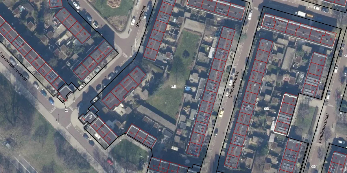 Gebruik de zoekbalk of klik op een perceel om informatie over het perceel te bekijken.