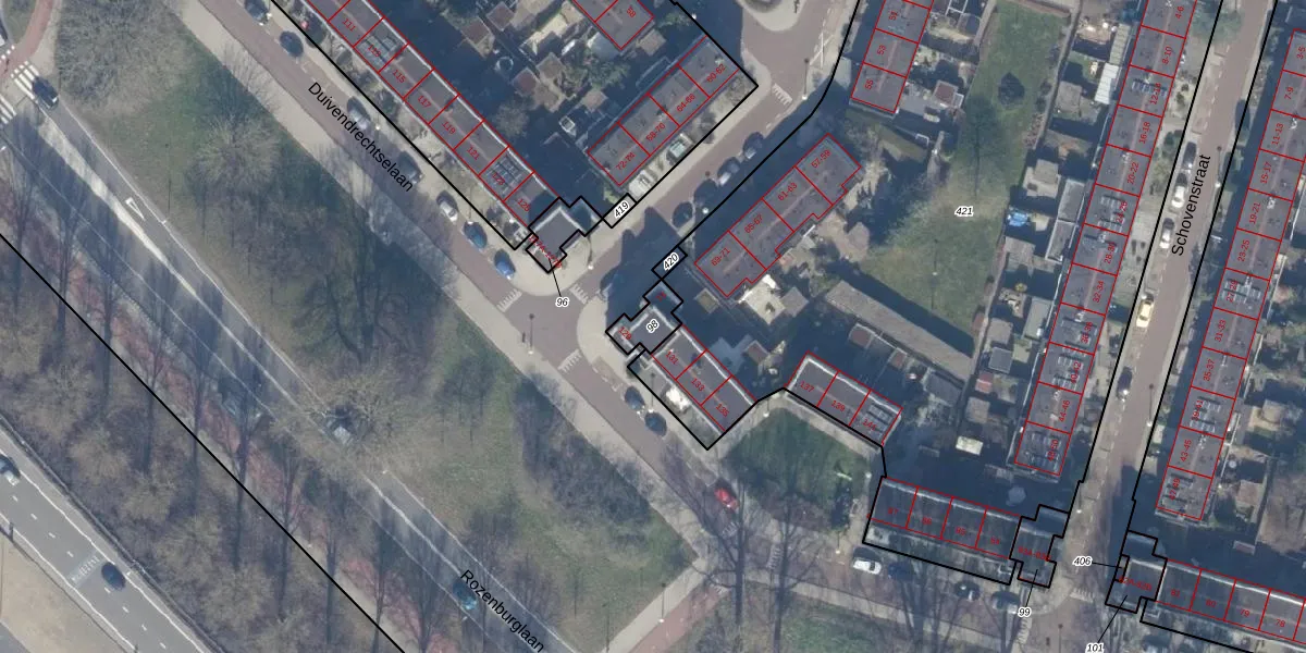 Gebruik de zoekbalk of klik op een perceel om informatie over het perceel te bekijken.