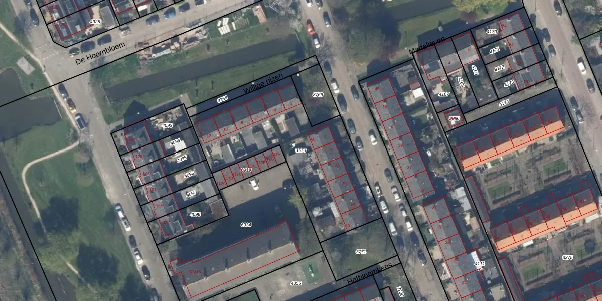 Gebruik de zoekbalk of klik op een perceel om informatie over het perceel te bekijken.