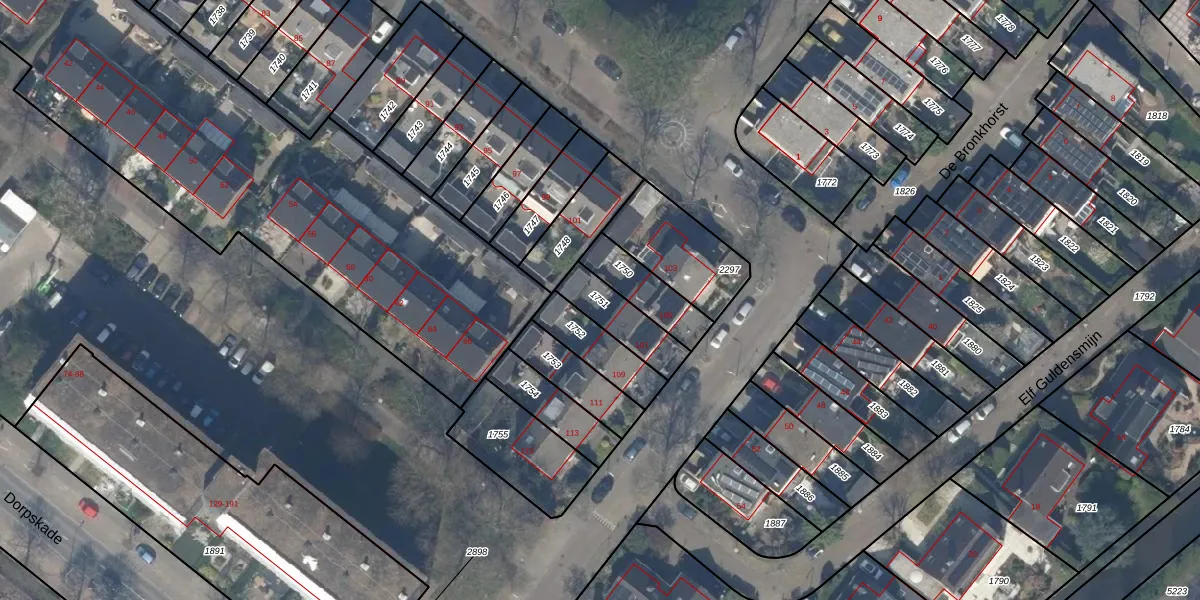 Gebruik de zoekbalk of klik op een perceel om informatie over het perceel te bekijken.