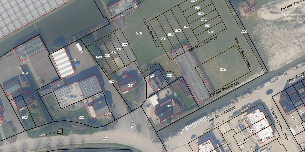Gebruik de zoekbalk of klik op een perceel om informatie over het perceel te bekijken.