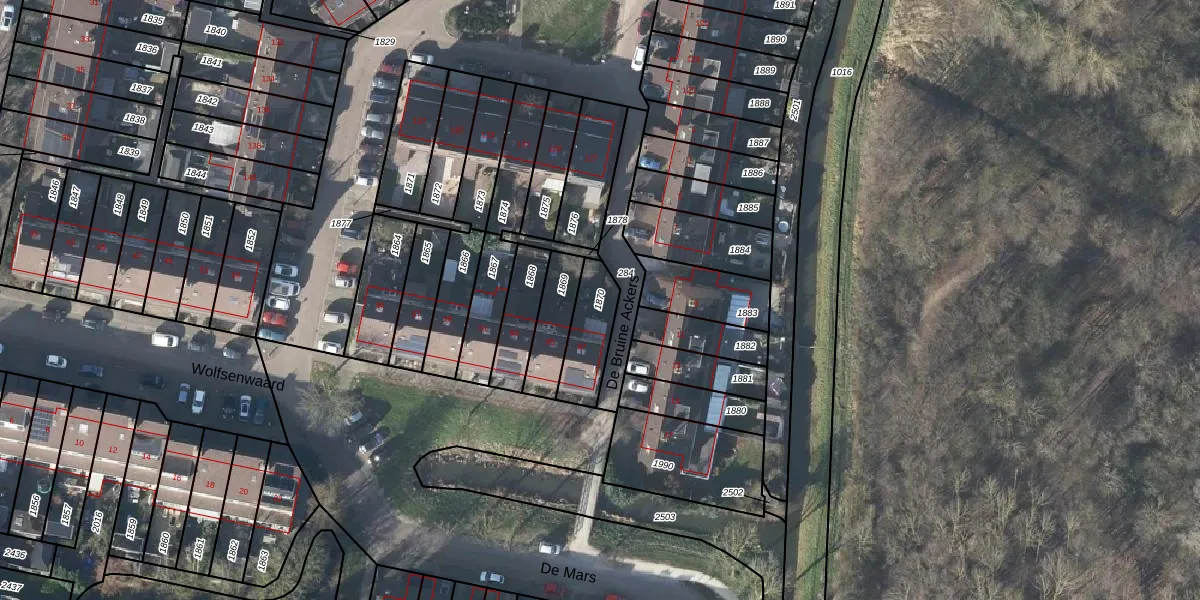 Gebruik de zoekbalk of klik op een perceel om informatie over het perceel te bekijken.