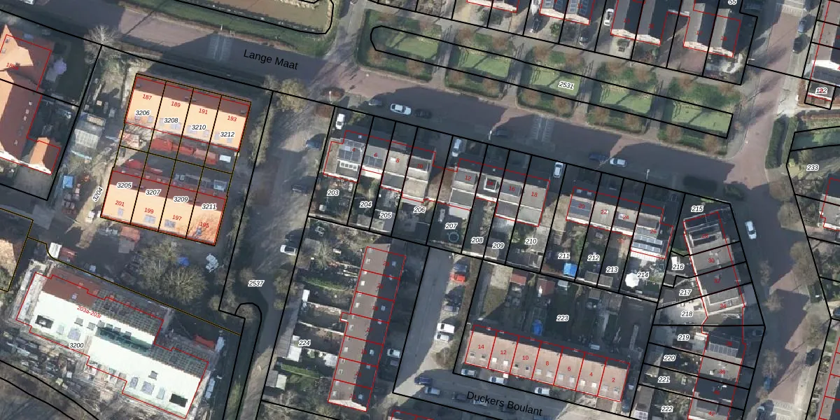 Gebruik de zoekbalk of klik op een perceel om informatie over het perceel te bekijken.