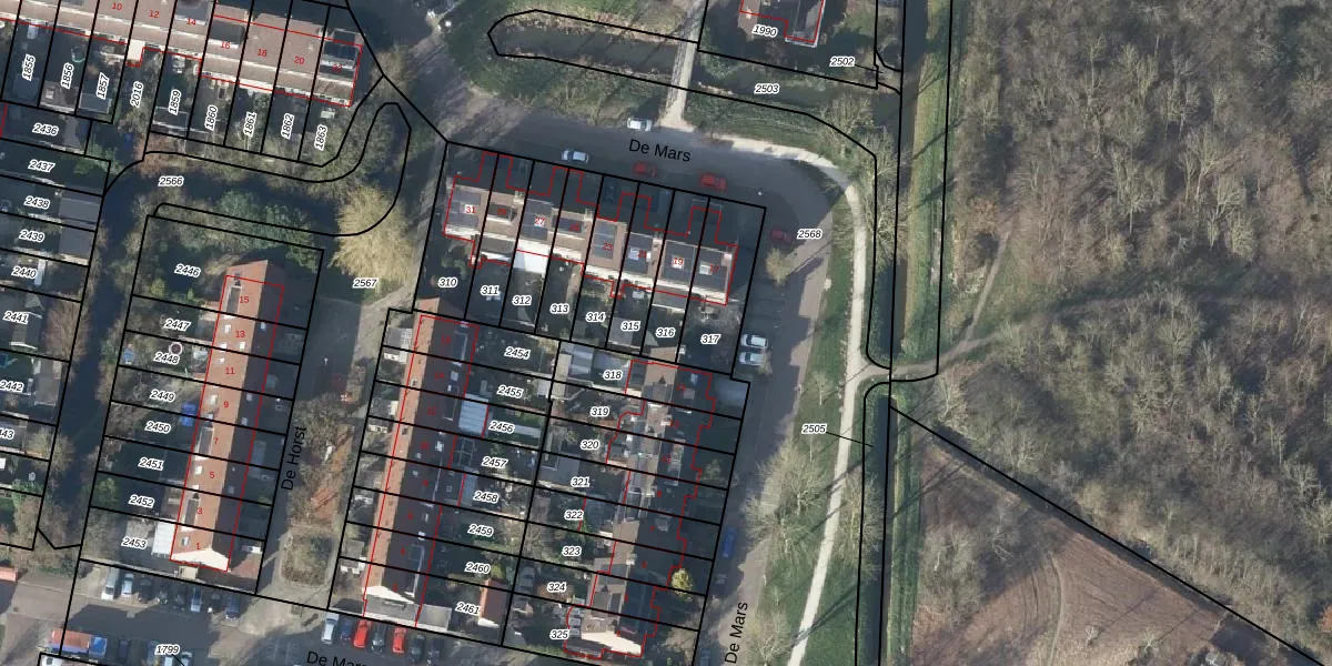 Gebruik de zoekbalk of klik op een perceel om informatie over het perceel te bekijken.